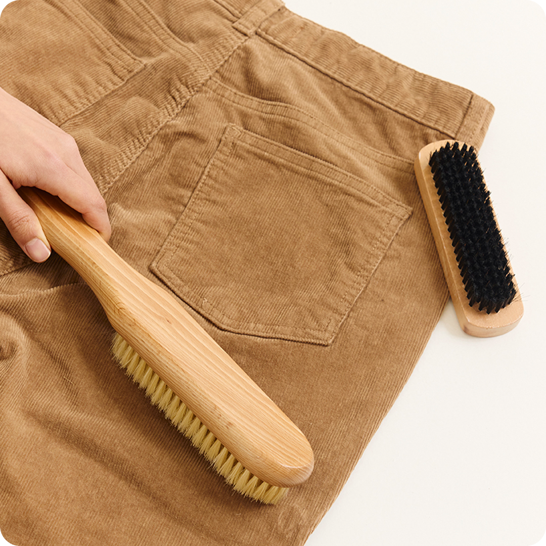 코듀로이는 건조 과정에서 결이 엉키거나 흐트러지면 얼룩덜룩해 보일 수 있어요. 🧺세탁이 끝나면 원래의 상태로 뒤집은 뒤, 바닥에 펼쳐주세요. 그다음, 젖은 상태에서 부드러운 솔로 가볍게 빗질하면 형태 유지에 도움이 돼요. 코듀로이 소재를 보관하기 전에 손이나 브러시로 표면을 가볍게 쓸어주는 건 코듀로이를 오래 입을 수 있는 좋은 습관이랍니다. |
