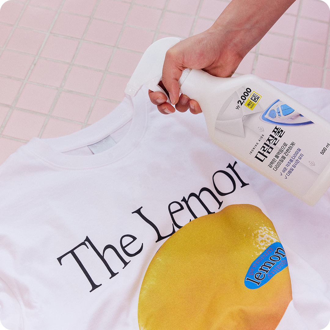 ➌ 다리미 풀로 잠옷 탈출 그다음 다리미 풀을 넥라인에 분사한 뒤, 다리미를 사용해 주름을 오므려주는 느낌으로 다려주세요. 이후 평평한 곳에 펼쳐 자연 건조하면 끝! 햇볕☀️이 잘 드는 장소에서 말리면 효과가 한층 좋아요. 참고로 젖은 티셔츠를 옷걸이에 걸면 중력 때문에 넥라인이 쉽게 늘어날 수 있으니, 건조대에 뉘어 말리는 게 변형을 줄이는 데 도움이 돼요.