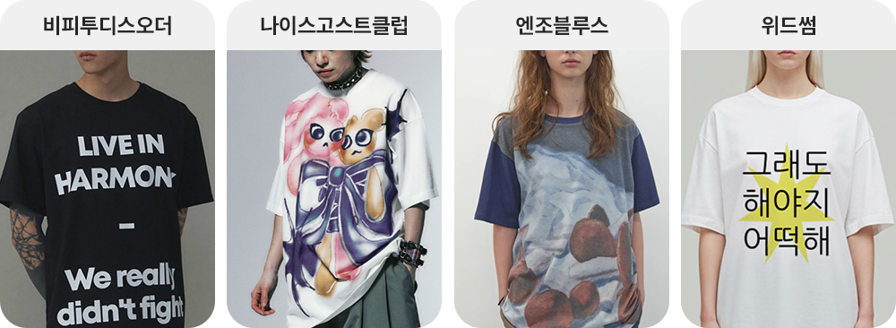 초등학생 시절부터 덕질을 쉼 없이 해온 에디터는 굿즈 전성시대에 살고 있다는 사실만으로도 행복합니다.🥹 예전에는 누가 봐도 ‘굿즈입니다!🔊’ 하고 외치는 디자인이 대부분이라 소장용으로만 만족해야 했는데요. 요즘은 얼핏 보면 그냥 브랜드 티셔츠 같은 굿즈들이 많아졌어요. 예를 들어, 승헌쓰의 유행어 ‘컨디션 난조’를 ‘Condition Nienzo’라는 레터링으로 적어 멀리서 보면 세련된 타이포처럼 보이게 만든 거죠. 재쓰비 역시 비슷한 방식으로 여무세요 티셔츠를 선보였습니다. 🎬영화 좋아하는 태기즈 있나요? 씨네웨이에서는 ‘가장 빨리 볼 수 있는 영화 티켓 한 장 부탁드립니다’를 28개 국어로 적어둔 티셔츠👕를 발매해 인기를 끌었어요. 꾸준히 재판매 중이니 인스타그램을 확인해 볼 것! 영화 <해피엔드>에서 아직 헤어 나오지 못했다면, 레몬서울과 협업한 음악연구부 굿즈도 추천합니다. 성수동에 위치한 영화관, 무비랜드🍿에서는 현장에서 실크 프린팅을 해주는 티셔츠도 구매할 수 있어요. 같은 굿즈를 입은 사람을 보면… 모르는 사람인데도 괜히 반가운 거, 저만 그런 거 아니죠?💛 |