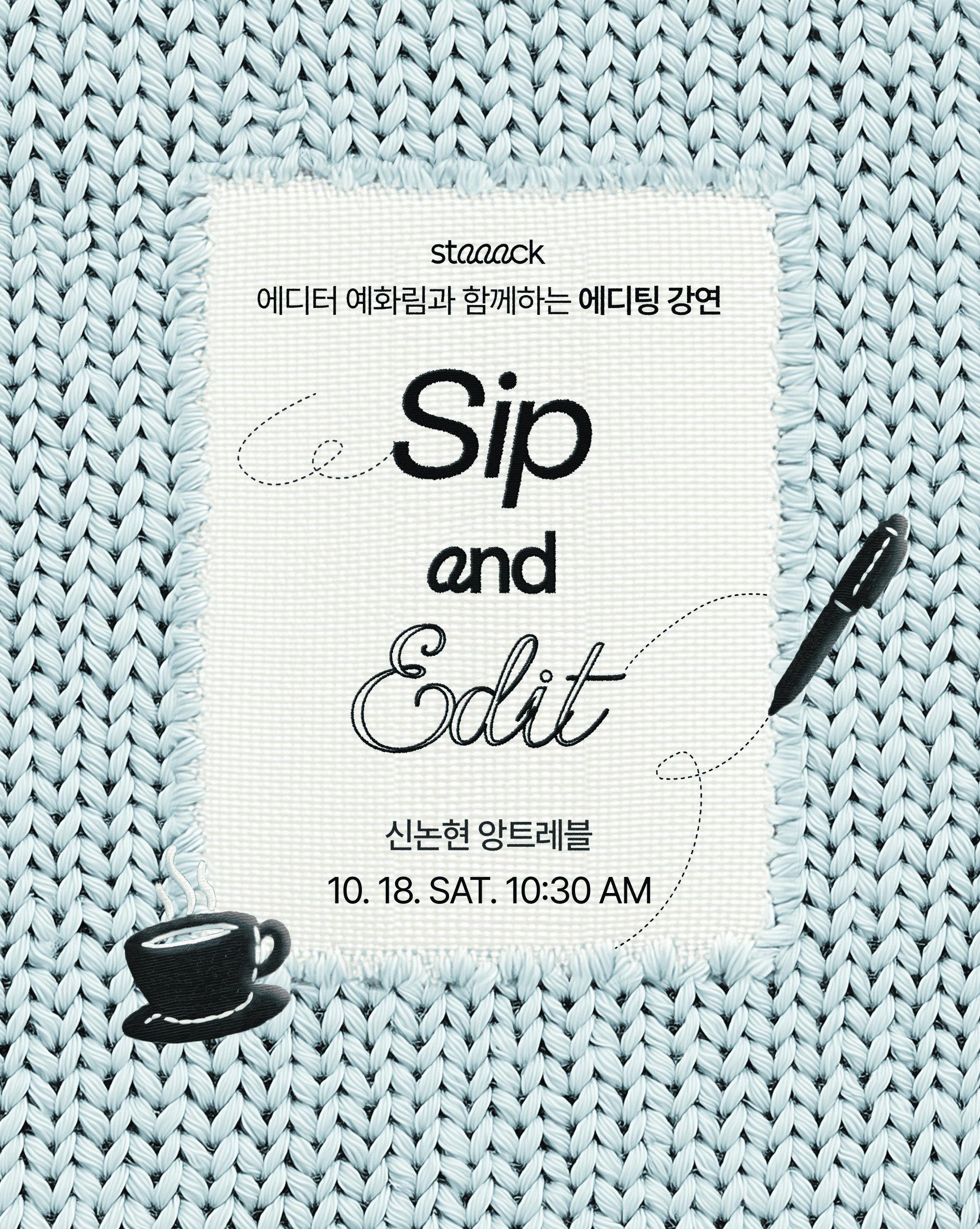 ๊ฐ์ฐ <Sip and Edit>์ ์ด๋ํฉ๋๋ค. ์คํ ๋ฟ๋ง ์๋๋ผ ๋ค์ํ ๋ถ์ผ์์ ์ฝํ