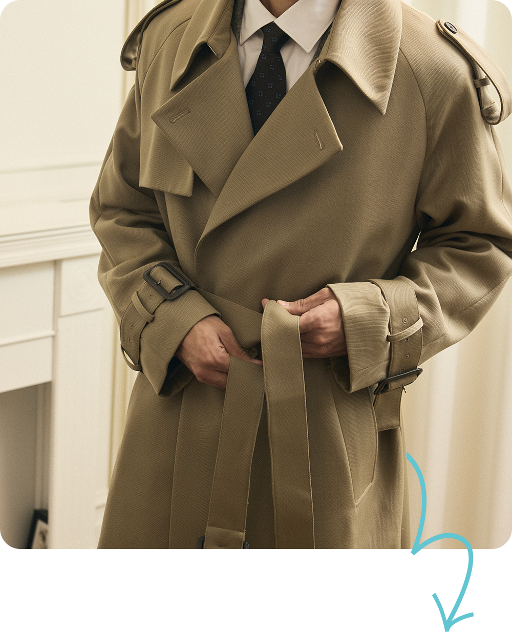 ఎ 디테일은 전쟁터에서 트렌치코트(trench coat)는 19세기 후반에 영국🇬🇧에서 처음 등장했어요. 이후 1차 세계대전 당시, 영국군 장교들이 군복🪖으로 입기 시작하면서 ‘트렌치코트’라는 이름이 붙었죠. 말 그대로, 적의 공격을 피하던 참호(trench)에서 입던 코트였던 거예요. 방수 원단, 단단히 여밀 수 있는 더블버튼, 계급장을 달던 견장, 소지품을 매달던 D링, 손목에 흙이 들어오는 걸 막던 소매 버클까지. 지금은 멋으로 보이는 디테일들이 원래는 전쟁터에서 살아남기 위한 기능이었죠. 전쟁이 끝난 뒤엔 영화 속 배우들이 입기 시작하면서 점점 대중화됐고, 전 세계🌍로 유행이 퍼졌어요. |