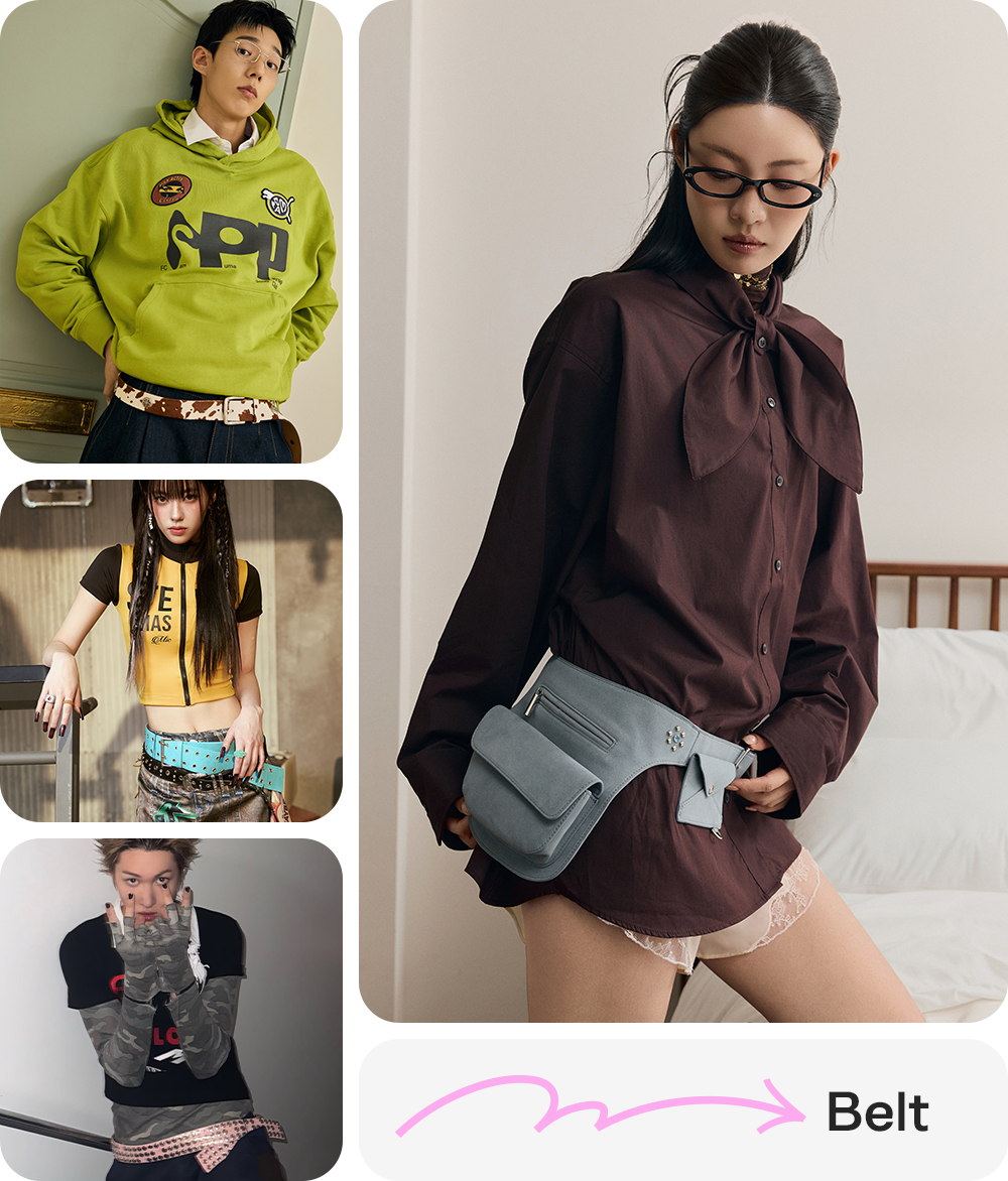 벨트는 있는데 어떻게 매치할지 모르겠다면? 셀럽들의 스타일링에서 힌트💡를 얻어보자구요. 이시안은 올블랙 룩에 사선 컷팅이 들어간 버클 벨트로 시크함을 살렸어요. 상·하의를 벨트로 분리하면, 다리가 더 길어 보이는 효과↕️도 있죠. 슬기는 코듀로이 재킷에 브라운 레더 벨트를 매치했어요. 티셔츠를 넣입할 땐, 아우터와 톤이 비슷한 벨트를 선택하면 실패할 일이 없어요. 영서는 스트랩이 겹겹이 레이어드된 듯한 벨트로 허리 라인을 강조했고, 모모는 폭과 소재가 다른 벨트를 겹쳐 독창적인 레이어링을 보여줬어요. 쌀쌀해진 날씨🤧엔 아우터 위에 벨트를 더해보세요. 부해보이는 실루엣은 잡아주고, 분위기는 완전히 달라져요. 아우터 한 벌 가격의 10분의 1로 스타일 반전 가능!