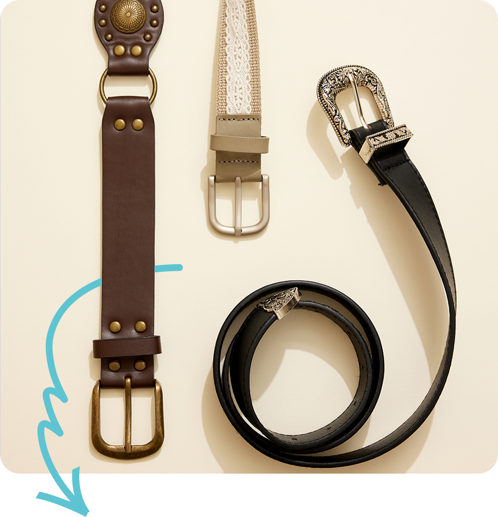 현대에 들어와서는 허리선을 강조하는 슈트 스타일🤵🏻이 유행하면서 멜빵을 대신해 벨트가 남성복 액세서리로 자리 잡기 시작해요. 이어서 여성복에서도 스커트나 드레스👗 위에 벨트를 매는 스타일이 유행했죠. 80년대에는 펑크 문화🤘와 함께 스터드 벨트가, 90년대에는 디스코💃를 거치며 체인 벨트가 인기를 끌었어요. 그렇게 벨트는 옷을 고정하는 실용을 넘어, 개성을 드러내는 액세서리로 진화하게 돼요. |