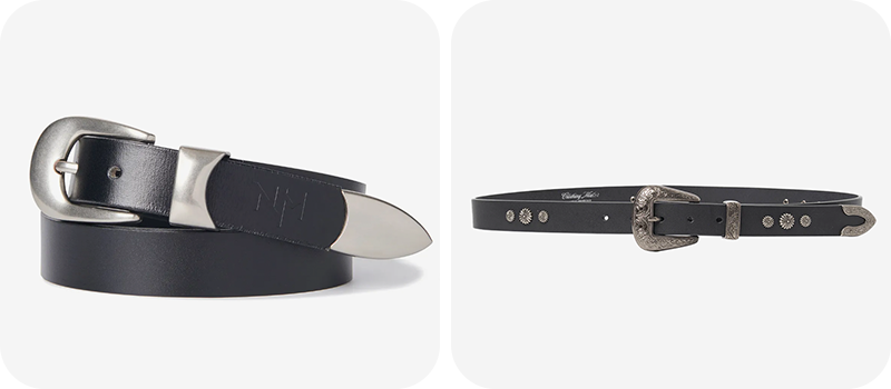 볼드하고 장식 디테일이 돋보이는 전통적인 아메리칸 스타일부터 얇은 두께감의 미니멀한 요즘 스타일까지, 웨스턴 벨트는 종류와 디자인이 세분화되어 있어요. 덕분에 내 취향에 맞는 아이템을 선택할 수 있다는 것이 큰 장점입니다.